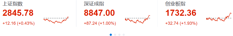 截至收盘,沪指涨0.43%,深成指涨1.00%,创业板指涨1.93%,北证50指数涨2.41%。此前沪指、深成指一度均跌超2%。沪深两市成交额8648亿元。两市超3500只个股下跌,北向资金净卖出7.41亿元。权重股午后发力、工业富联、北方华创、爱美客、隆基绿能、中国中免涨超5%。