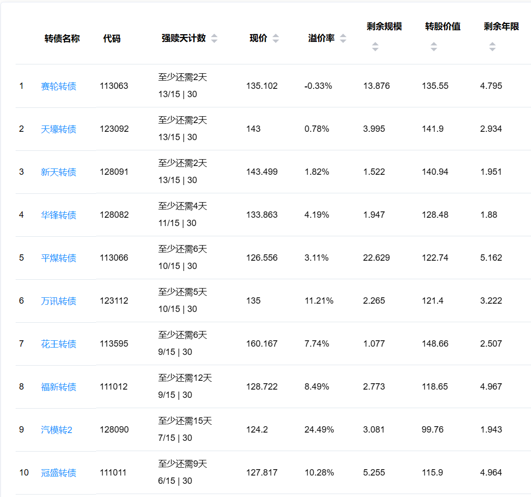 2、即将满足强赎转债