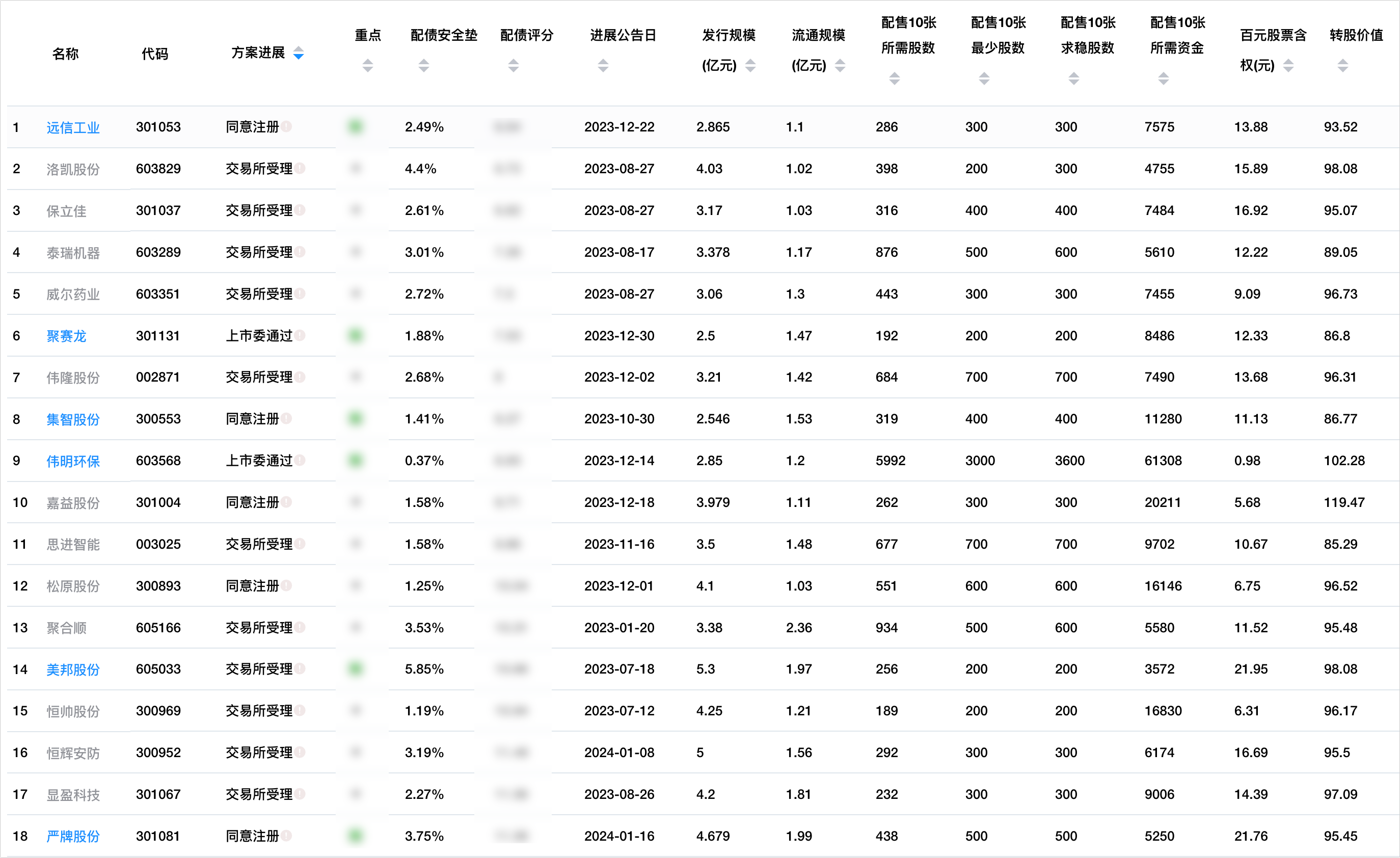 根据以往经验,小规模配债股未来反弹甚至比小规模转债更快(当然如果短期不能触底,波动也更大),可挖掘的机会较多。