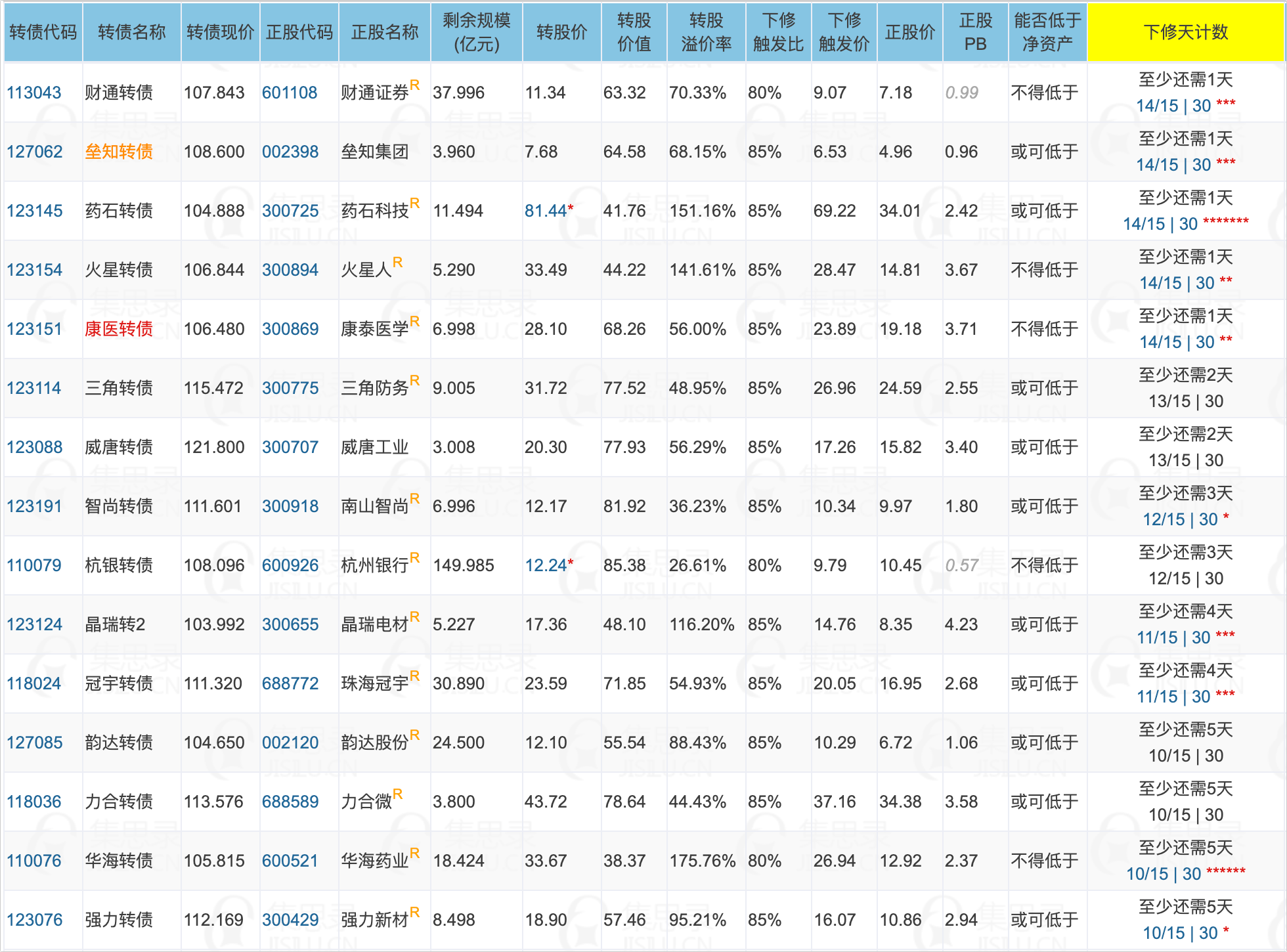 其中财通转债、智尚转债、华海转债、强力转债,个人认为下修的概率稍大一些。