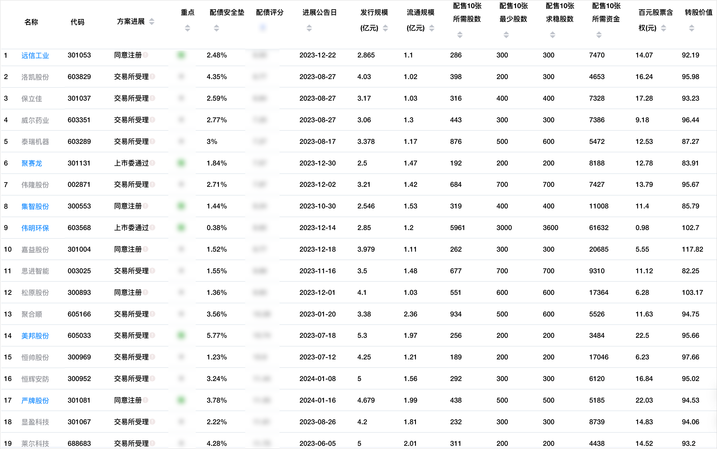 整理一下小规模配债股名单,同意注册+上市委通过+交易所受理3个阶段的配债股已经多达90只了,