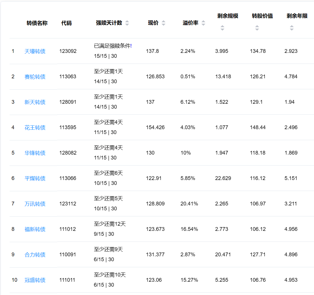 2、即将满足强赎转债