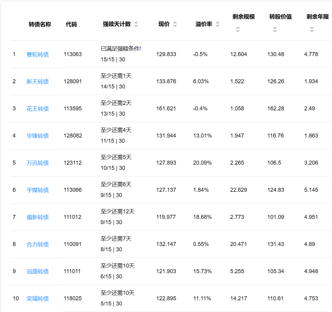 2、即将满足强赎转债