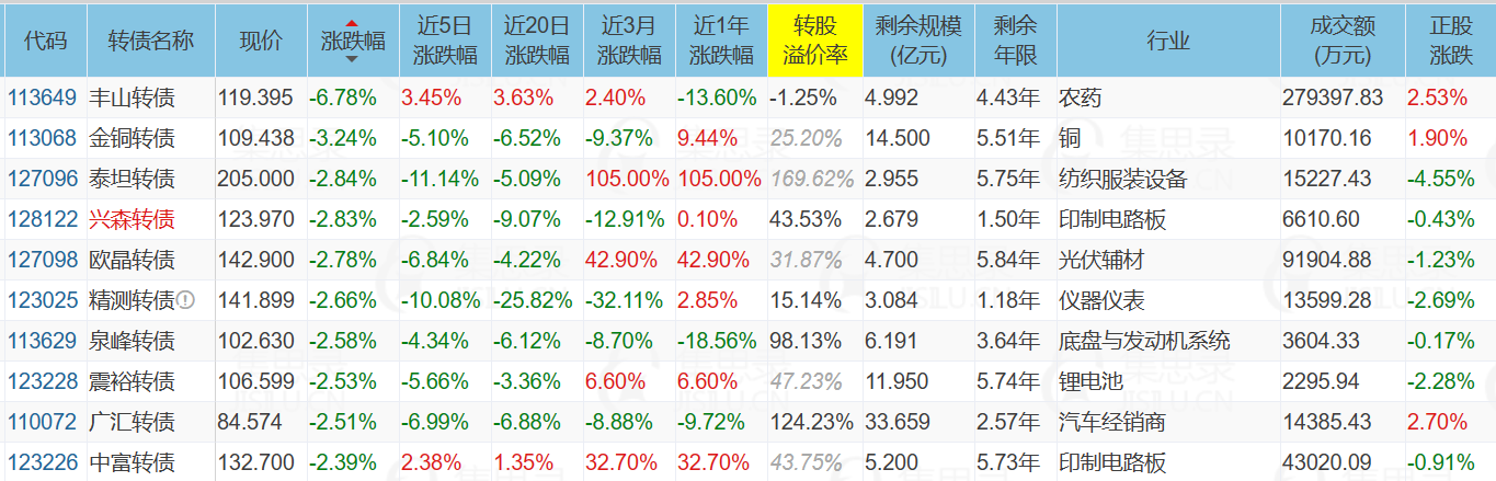2、跌幅榜前十