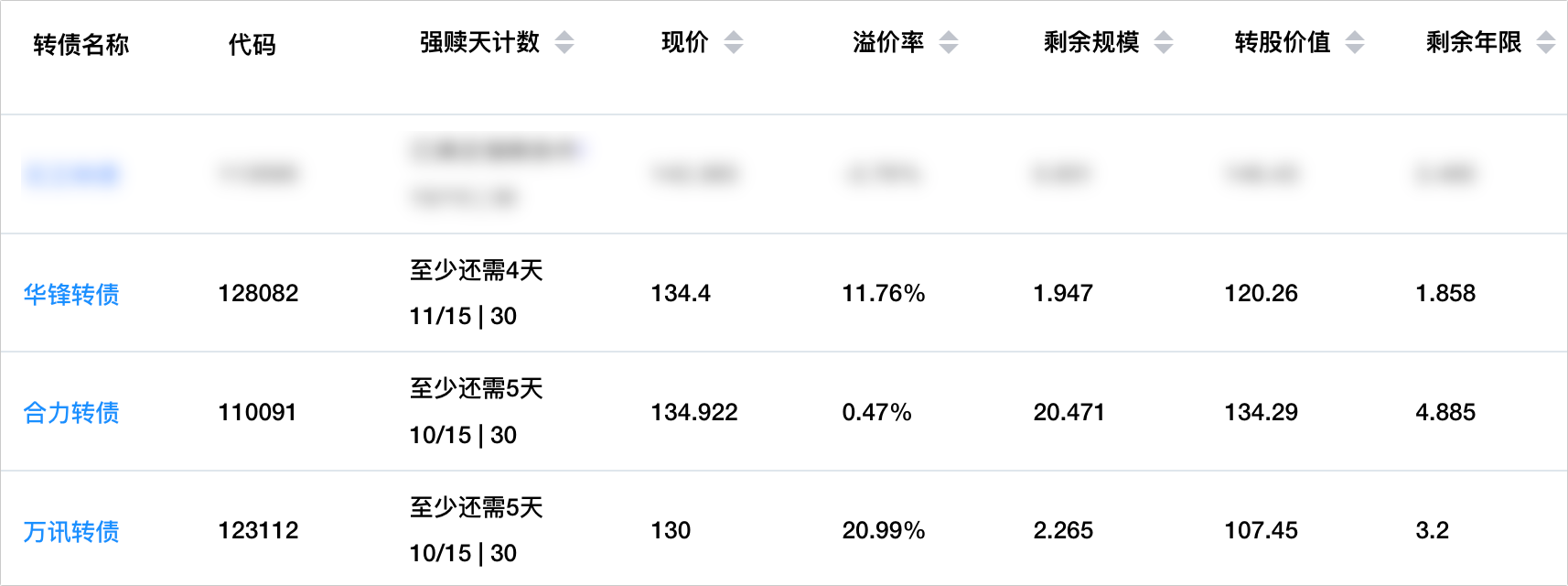 华锋转债、万讯转债,转股价值都跌破了130元,暂时停止了强赎计数。