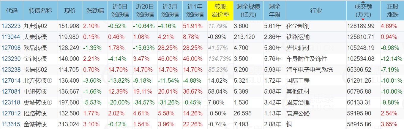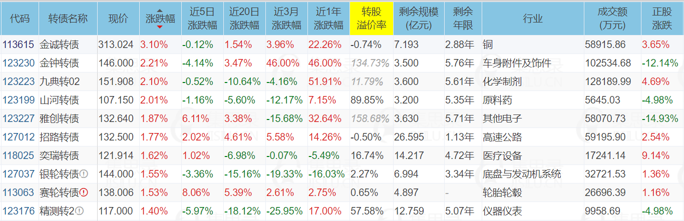 当前中位数106.050元,所有转债平均溢价率高达93.59%,溢价率中位数73.05%,目前100元及以下的可转债已经多达80只,130元以上的转债33只。