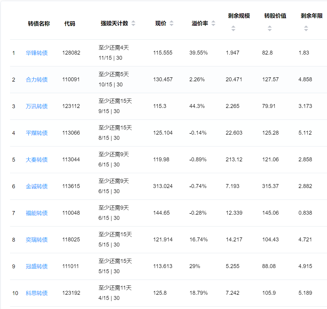 下面这些转债,要注意强赎杀溢价风险,尤其是溢价率在5%以上的。