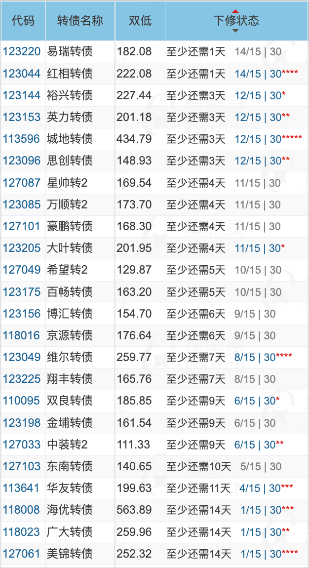 另外30只已经开始下修计数,可以优先考虑配置,其中有些转债到期收益率已经高到令人发指的地步。