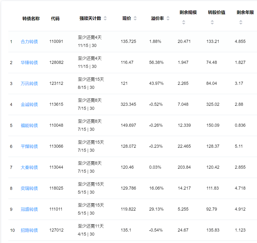 下面这些转债,要注意强赎杀溢价风险,尤其是溢价率在5%以上的。