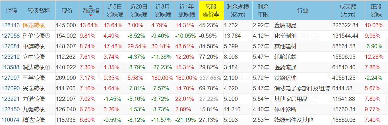 1、涨幅榜前十