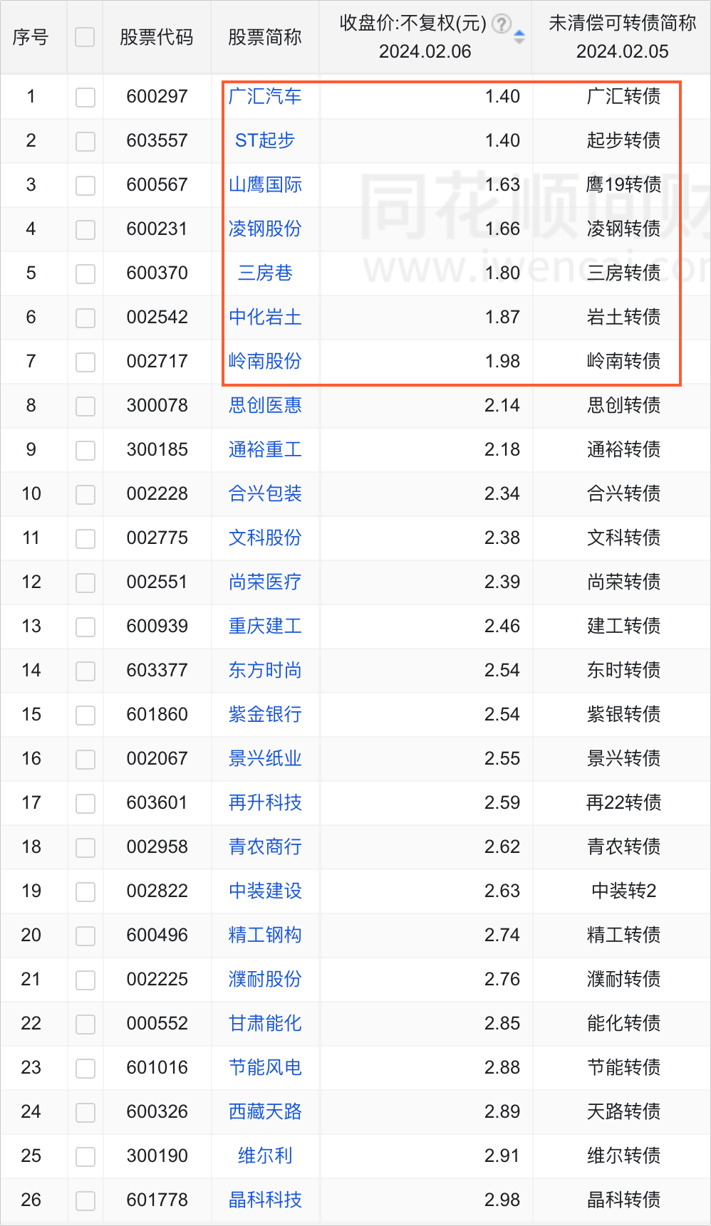 目前A股市场,正股价格低于2元的有160只,包含可转债的有7只,比例为4.375%,正股价格低于3元的有469只,包含可转债的有26只,比例只有5.54%。