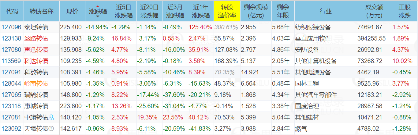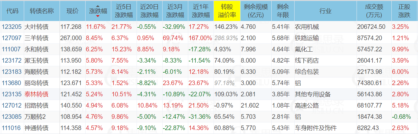 燃23转债、浙建转债、艾录转债、博汇转债、华兴转债、三力转债、洁美转债、金丹转债、神通转债、京源转债、蒙泰转债