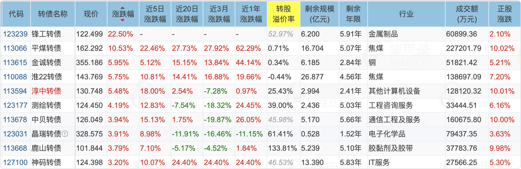 比如2023/12/08的汽模转2,三个交易日最高上涨43.24%;