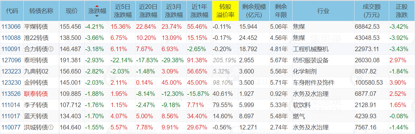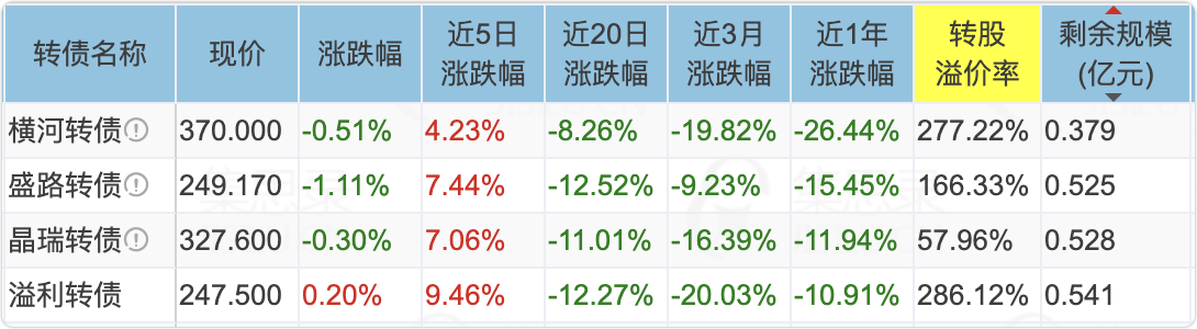 新致转债、丝路转债、科达转债、思特转债、锦鸡转债、金轮转债、佳力转债、银信转债、风语转债、中贝转债、贵广转债、测绘转债、科蓝转债、奥飞转债、神码转债、亿田转债等。