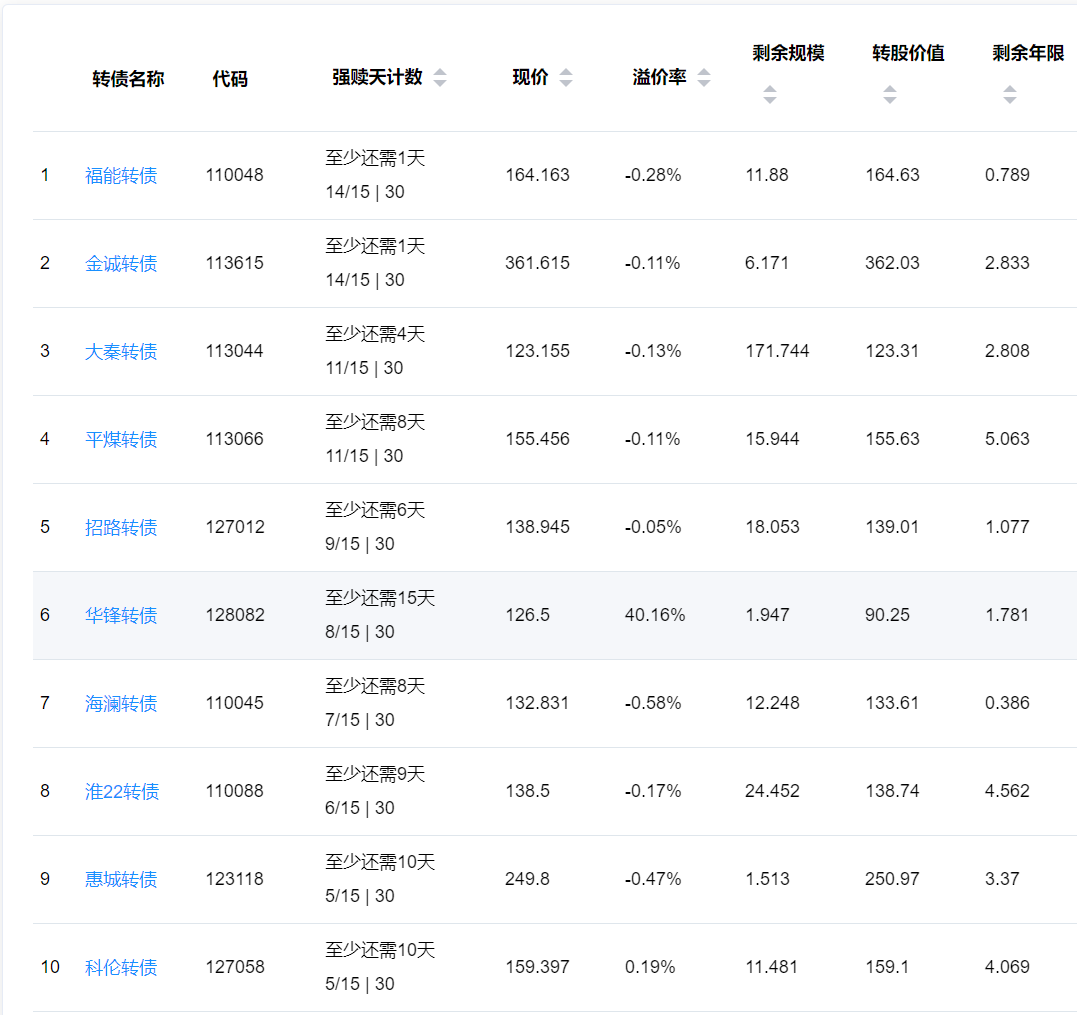 下面这些转债,要注意强赎杀溢价风险,尤其是溢价率在5%以上的。