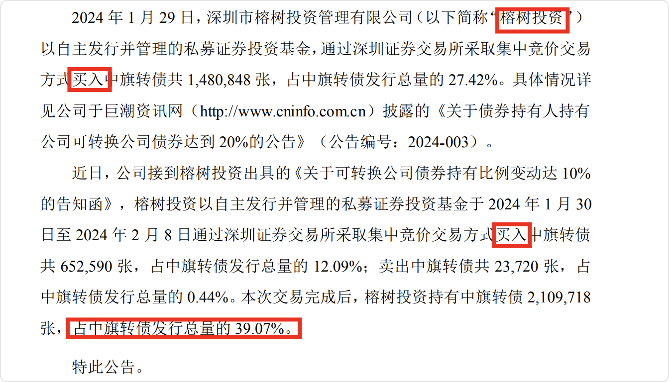查询公告后发现,有一家榕树投资的私募自1月29日后在持续买入,当前已经持仓39.07%。