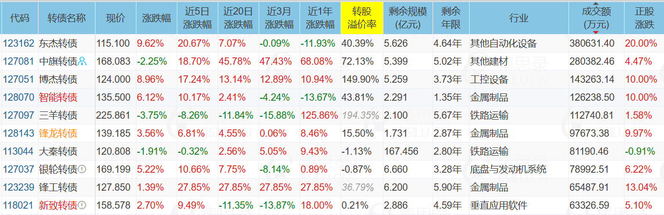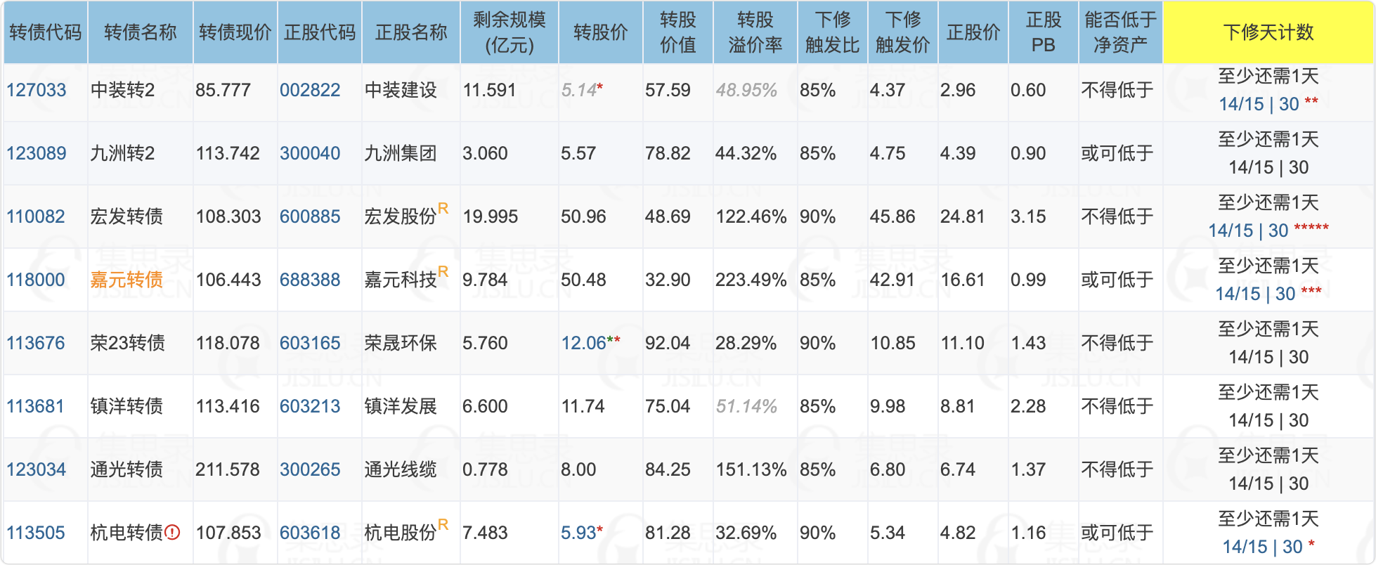 中装转2、九洲转2、宏发转债、嘉元转债、荣23转债、镇洋转债、通光转债、杭电转债