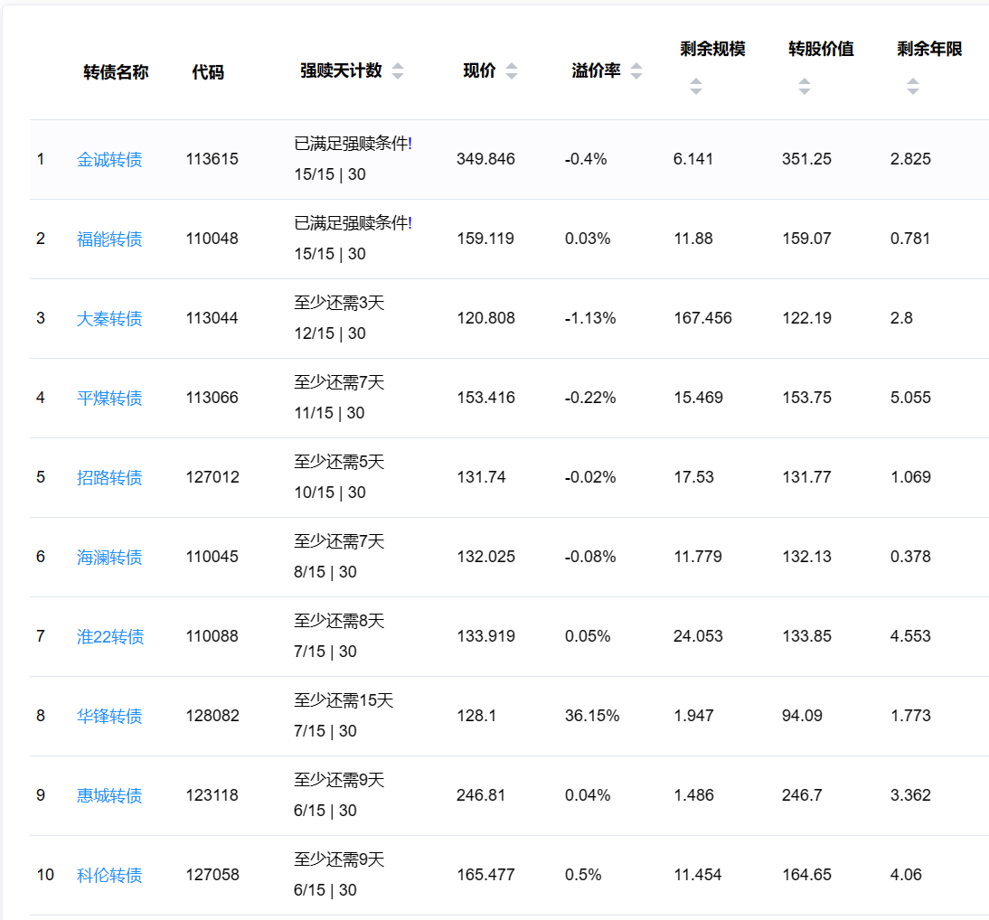 2、即将满足强赎转债