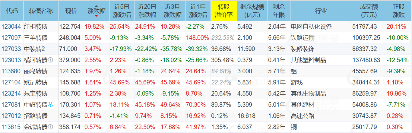 国城转债、亚泰转债、宏微转债、亚药转债、山鹰转债、智能转债、龙星转债、丰山转债、长集转债、宏丰转债、火炬转债、新港转债、聚隆转债、特纸转债、鹰19转债、岩土转债、恒锋转债、设研转债。