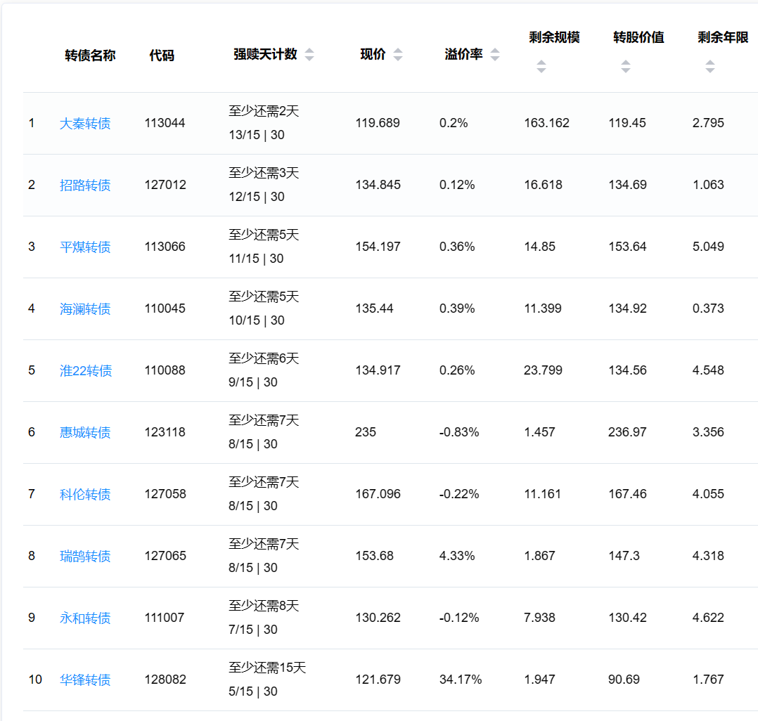 下面这些转债,要注意强赎杀溢价风险,尤其是溢价率在5%以上的。