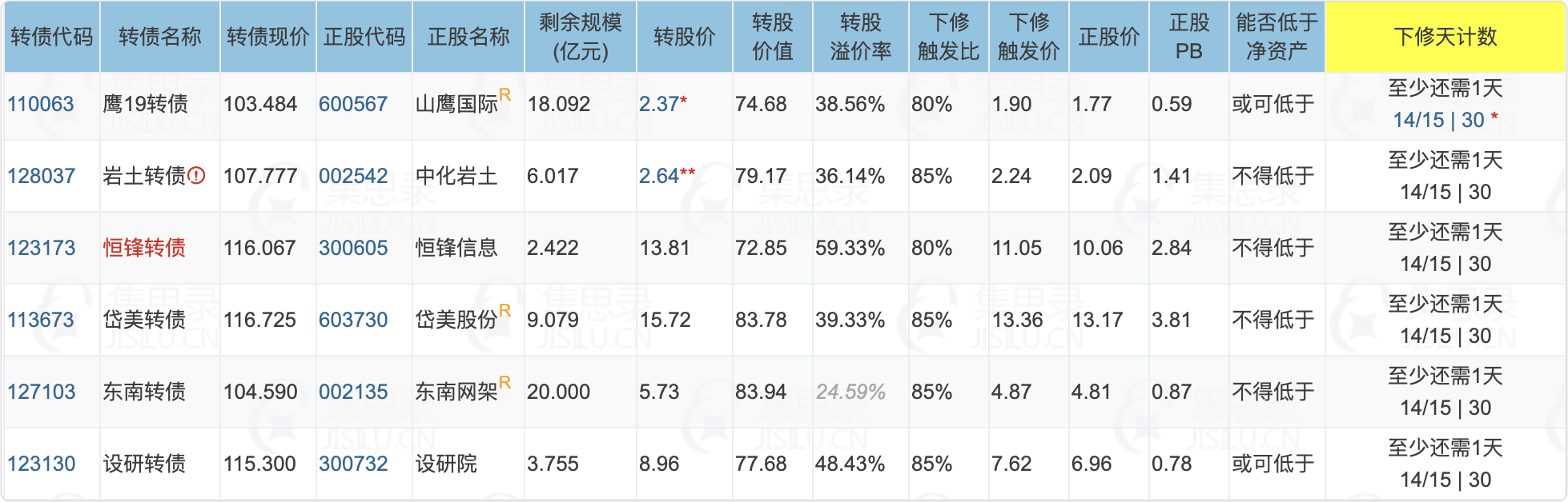 2、东南转债,华友转债,海波转债,未来6个月不下修。