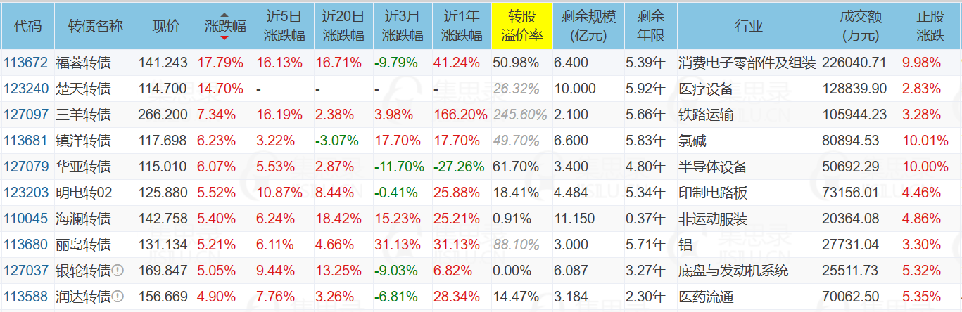1、涨幅榜前十