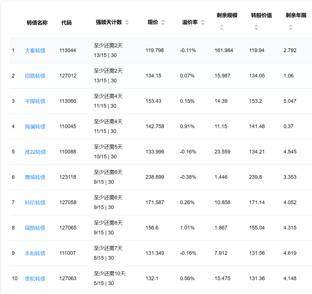 2、即将满足强赎转债