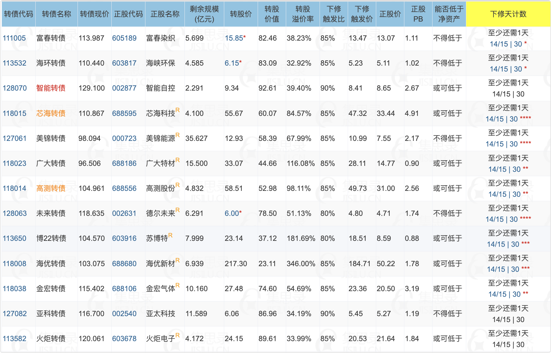 富春转债、海环转债、智能转债、芯海转债、美锦转债、广大转债、高测转债、未来转债、博22转债、海优转债、金宏转债、亚科转债、火炬转债