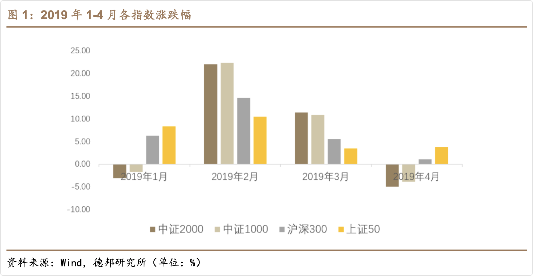 德邦证券的研报发现,这波股市的反弹行情与2019年1-4月的反弹行情在背景和结构上也很相似。那时候,大盘股比如沪深300和上证50最先开始反弹,然后是一些小盘股,比如中证1000和中证2000也跟着弹起来了。不过到了4月末,中证1000和中证2000开始分化调整,但大盘股还在持续上涨。