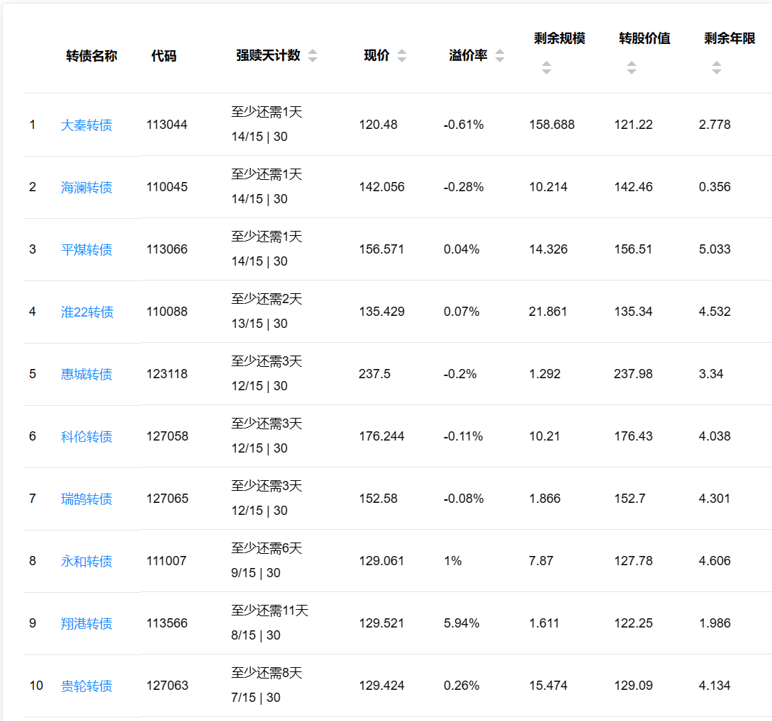 下面这些转债,要注意强赎杀溢价风险,尤其是溢价率在5%以上的。