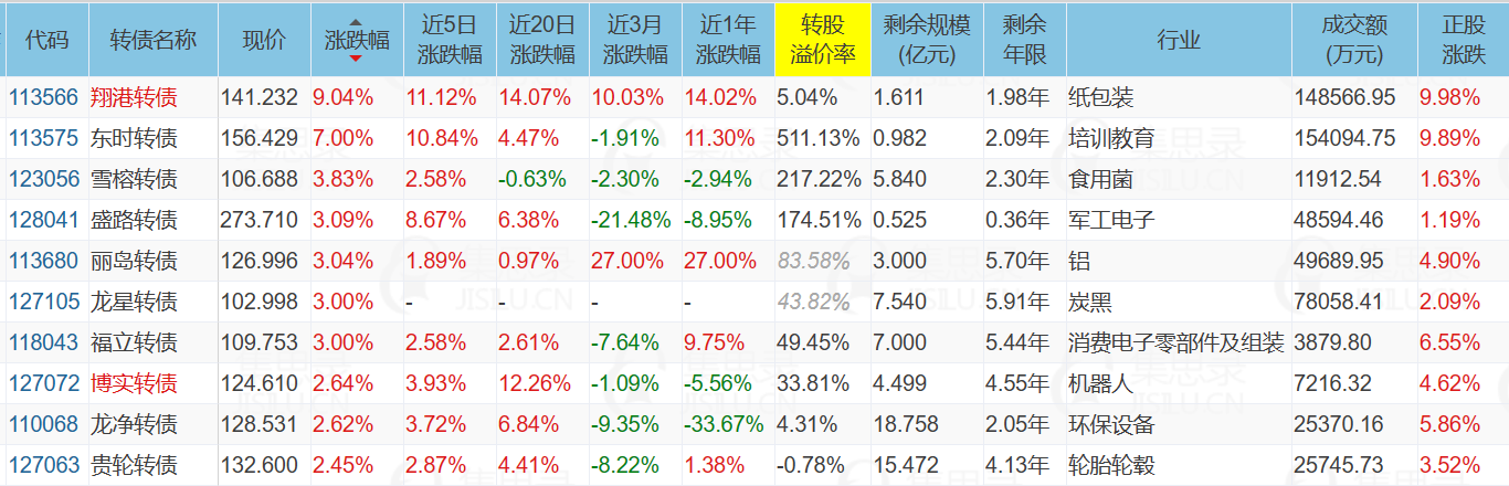 海澜转债,公告强赎。当前价格141.912元,剩余规模10.094亿,溢价率-0.38%,当前正股成交额2-4亿左右,可能会发生股债双杀,如果持有可以止盈了。它的剩余年限仅剩0.353年,近期股价一波极限拉升惊险强赎,也算是相当励志了,它也成为了继国贸转债、小康转债、久其转债之后,第4只能在剩余年限半年以内完成强赎的转债。