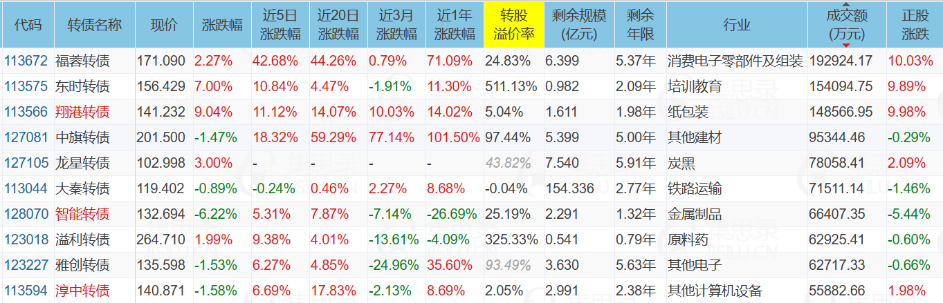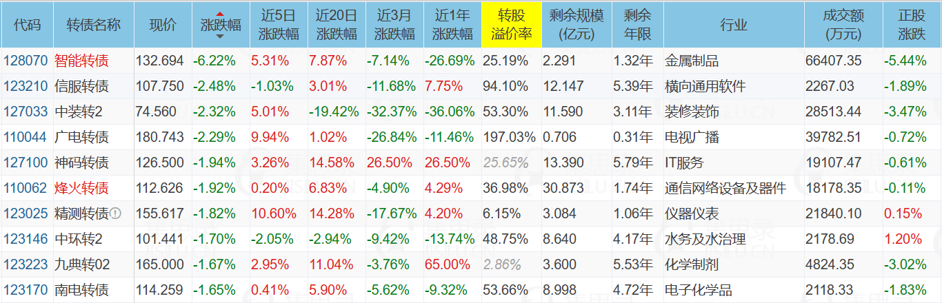 我整理了这些板块中包含的所有转债,溢价率从低到高排序,如下图: