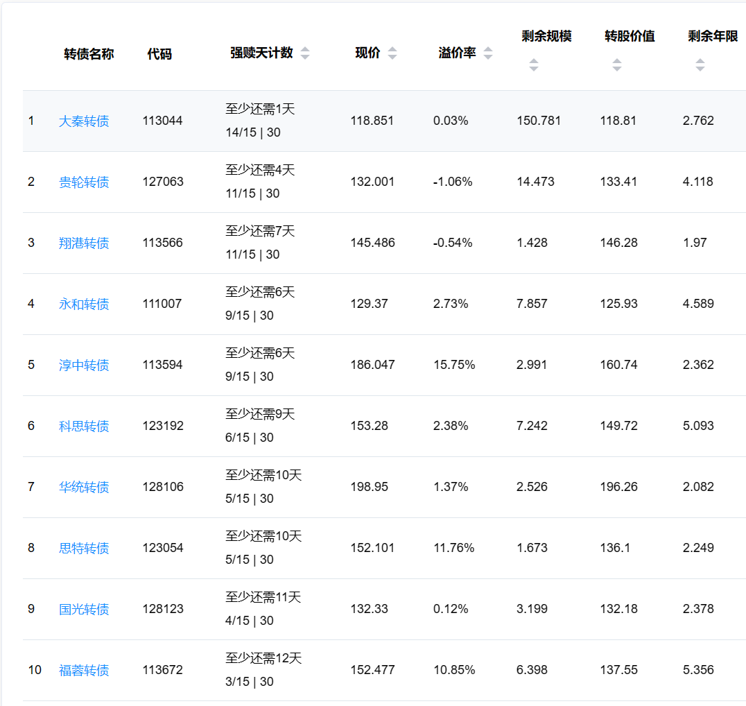 下面这些转债,要注意强赎杀溢价风险,尤其是溢价率在5%以上的。