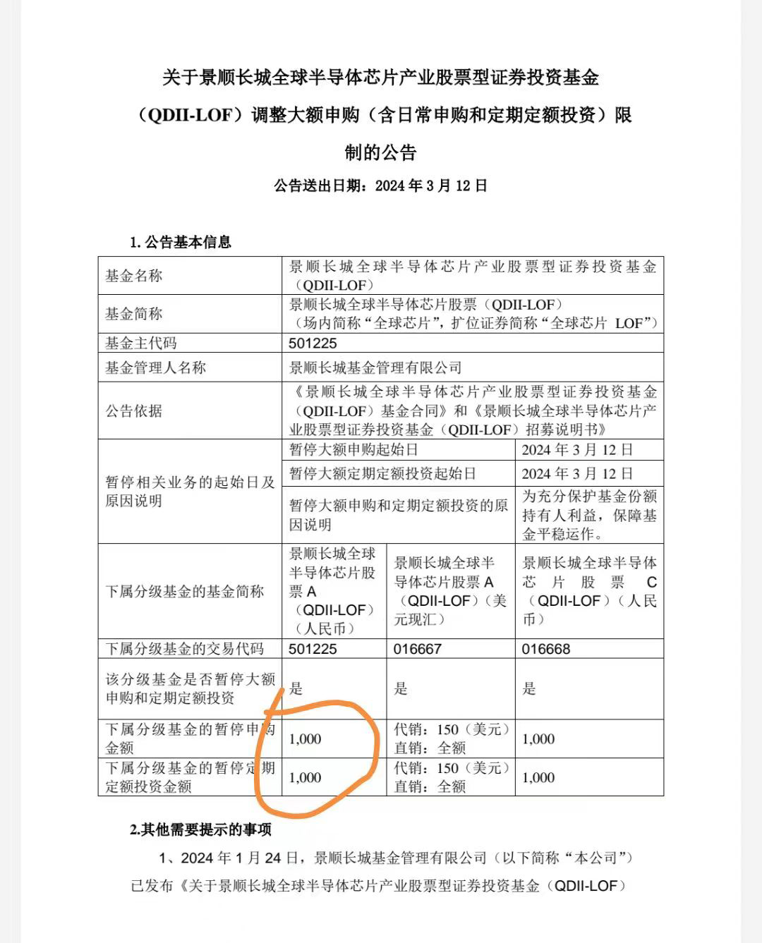 下午收盘后利好果然来了,全球芯片基金限购从1万变1000,申购额度少了,未来溢价率还会持续维持或升高,上周四周五申购的大概率吃肉。