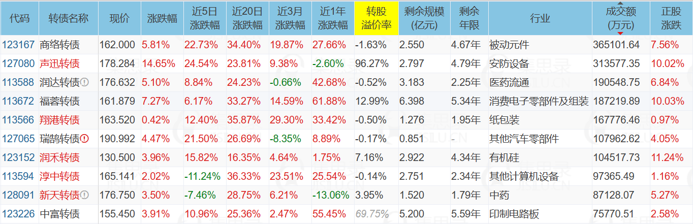 1、涨幅榜前十