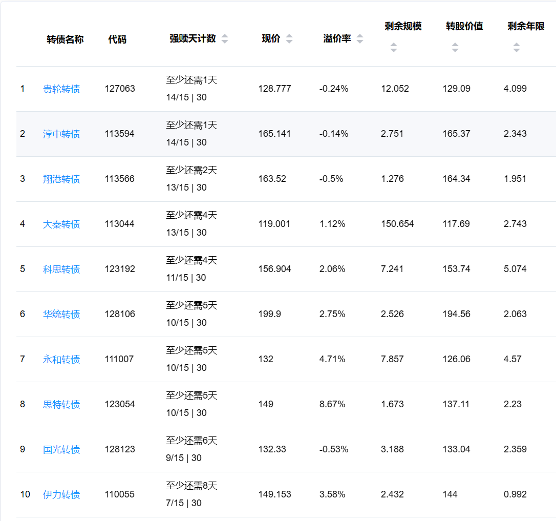 2、即将满足强赎转债