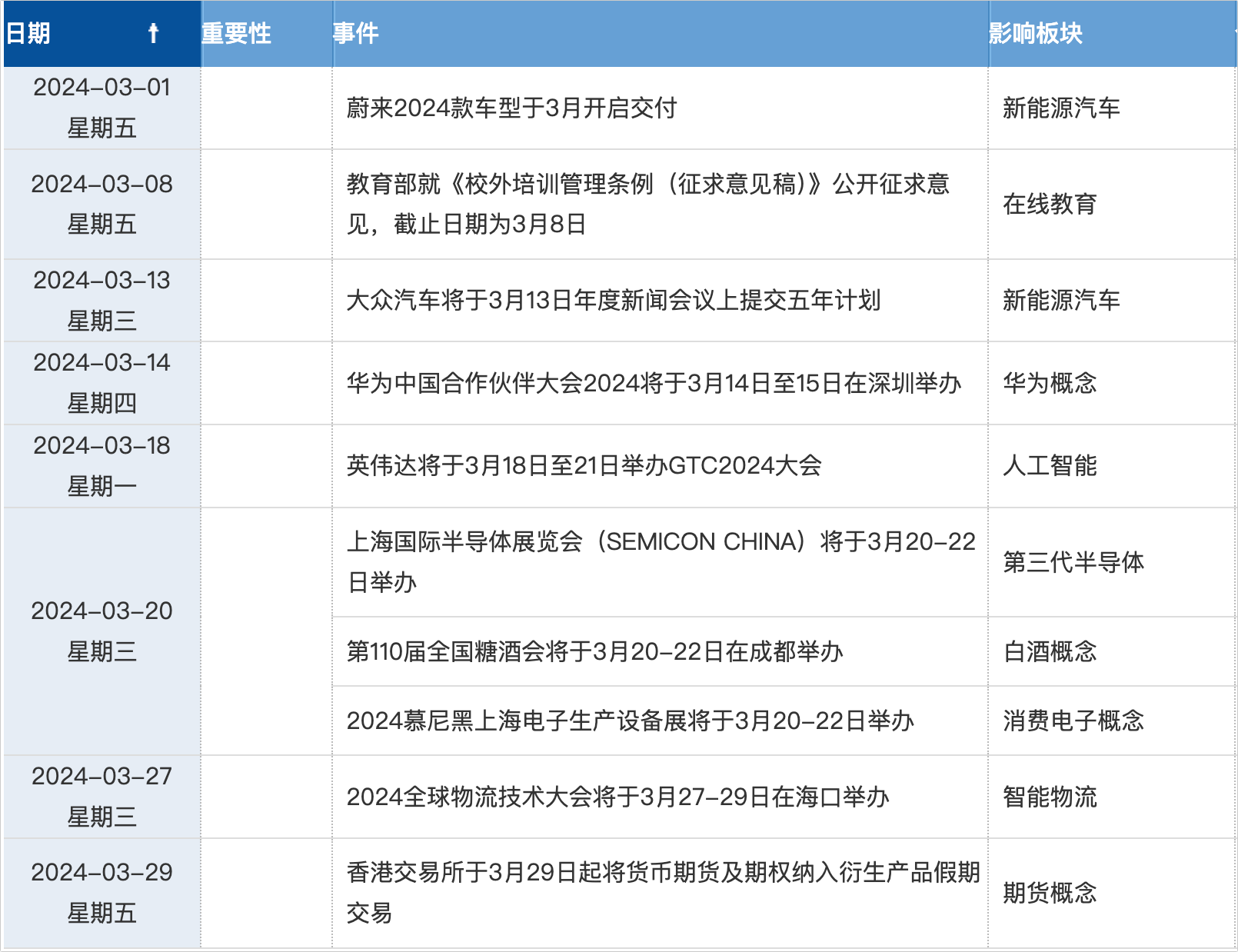 周三半导体、白酒概念、消费电子概念可能会有所表现,具体事件如下图: