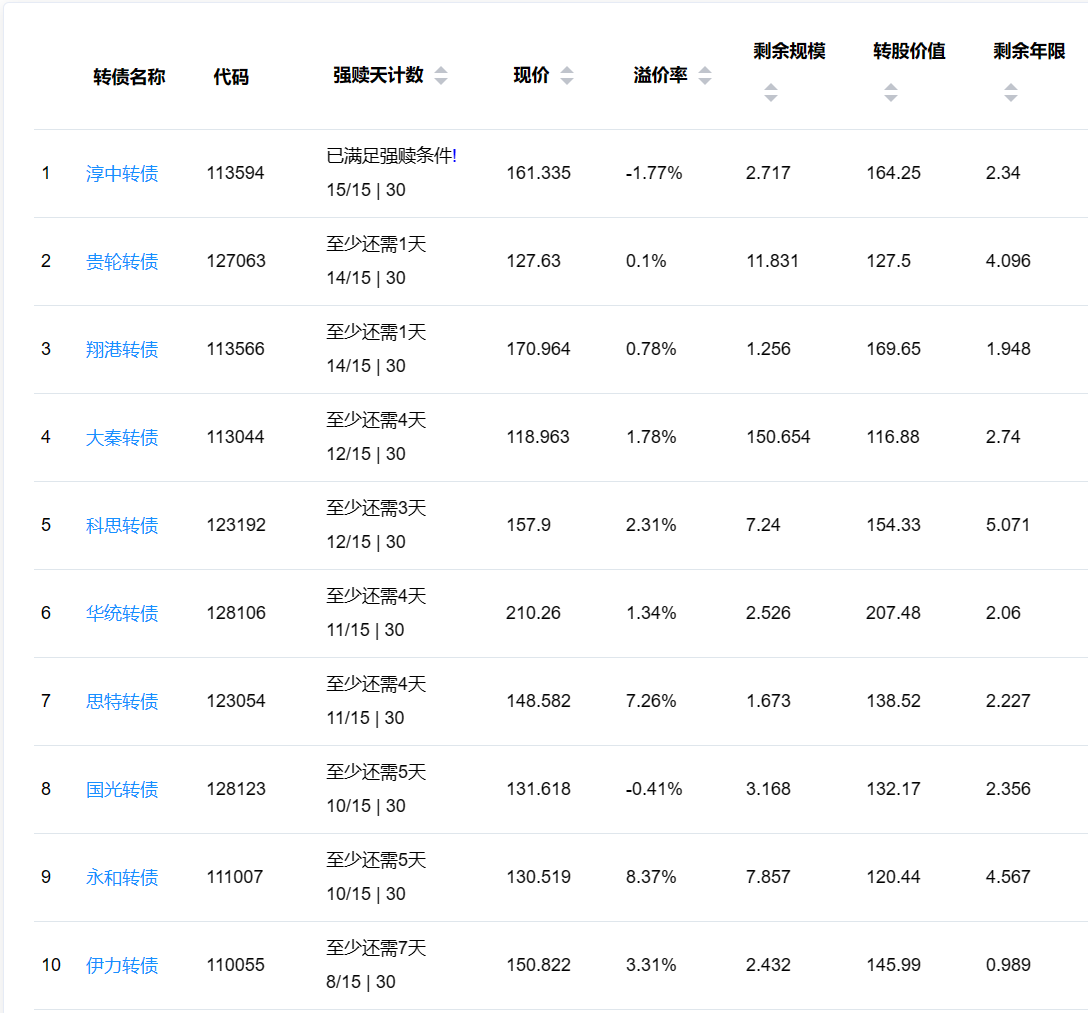 2、即将满足强赎转债