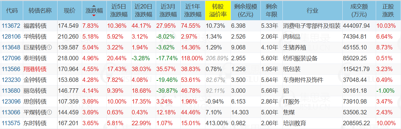 1、涨幅榜前十