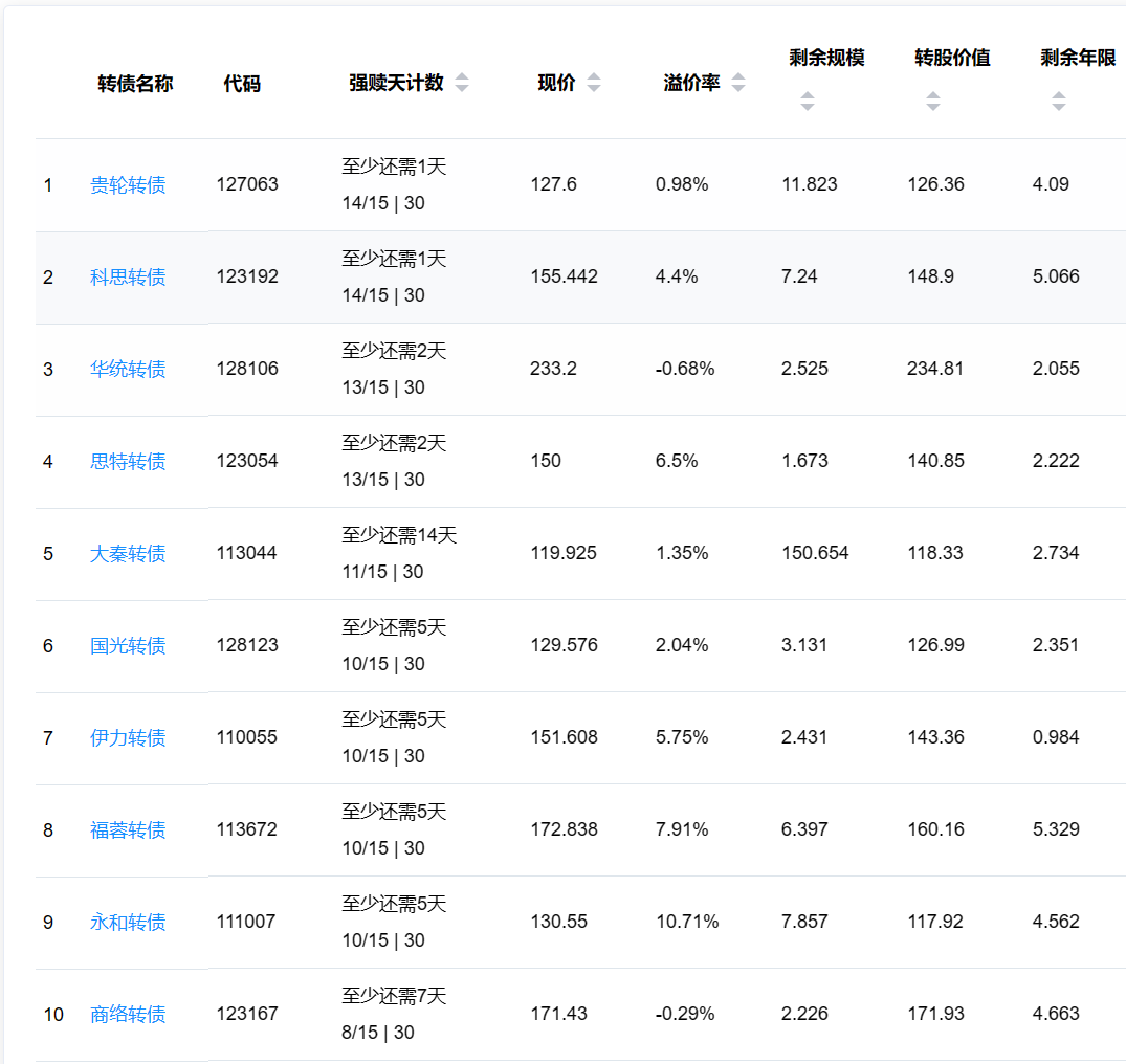 下面这些转债,要注意强赎杀溢价风险,尤其是溢价率在5%以上的。