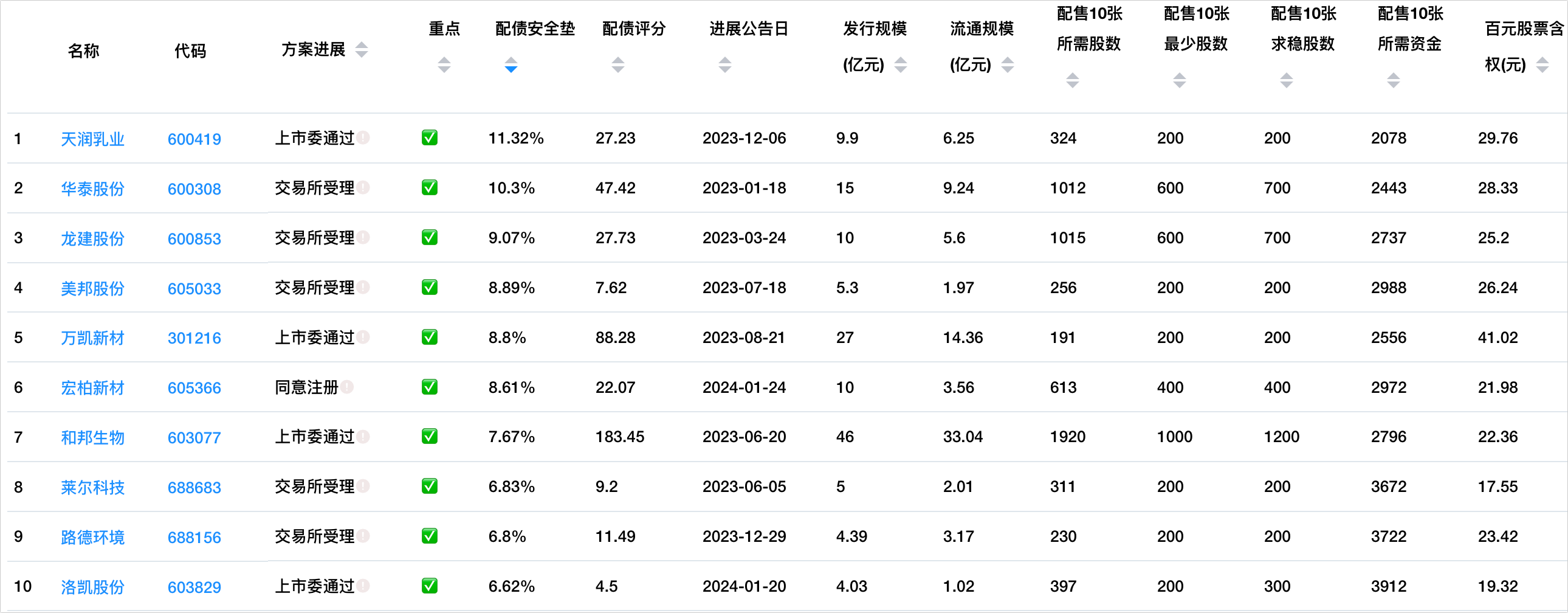 下面是同意注册/上市委通过/交易所受理,这三个阶段中值得关注的配债股。
