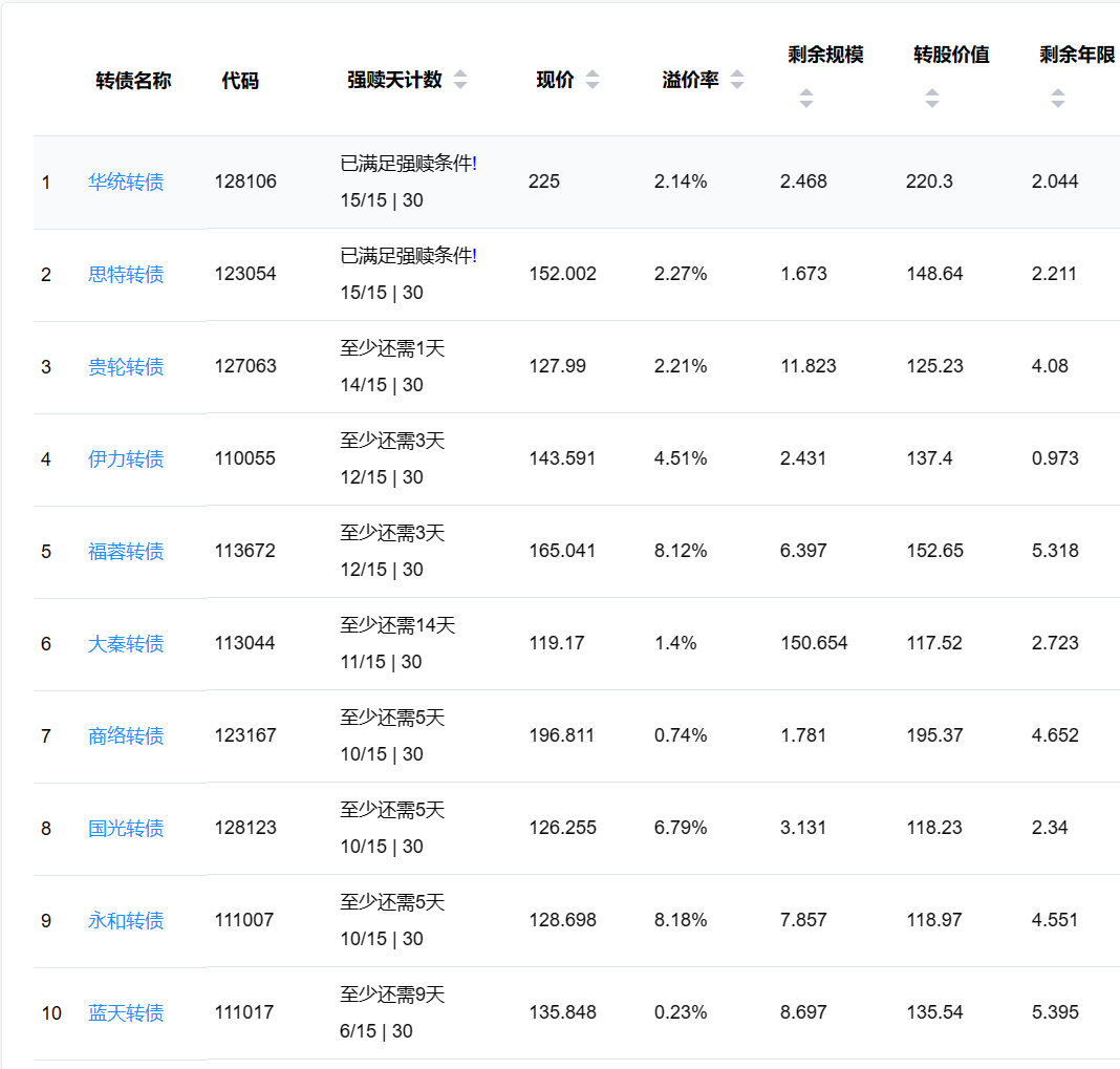 下面这些转债,要注意强赎杀溢价风险,尤其是溢价率在5%以上的。