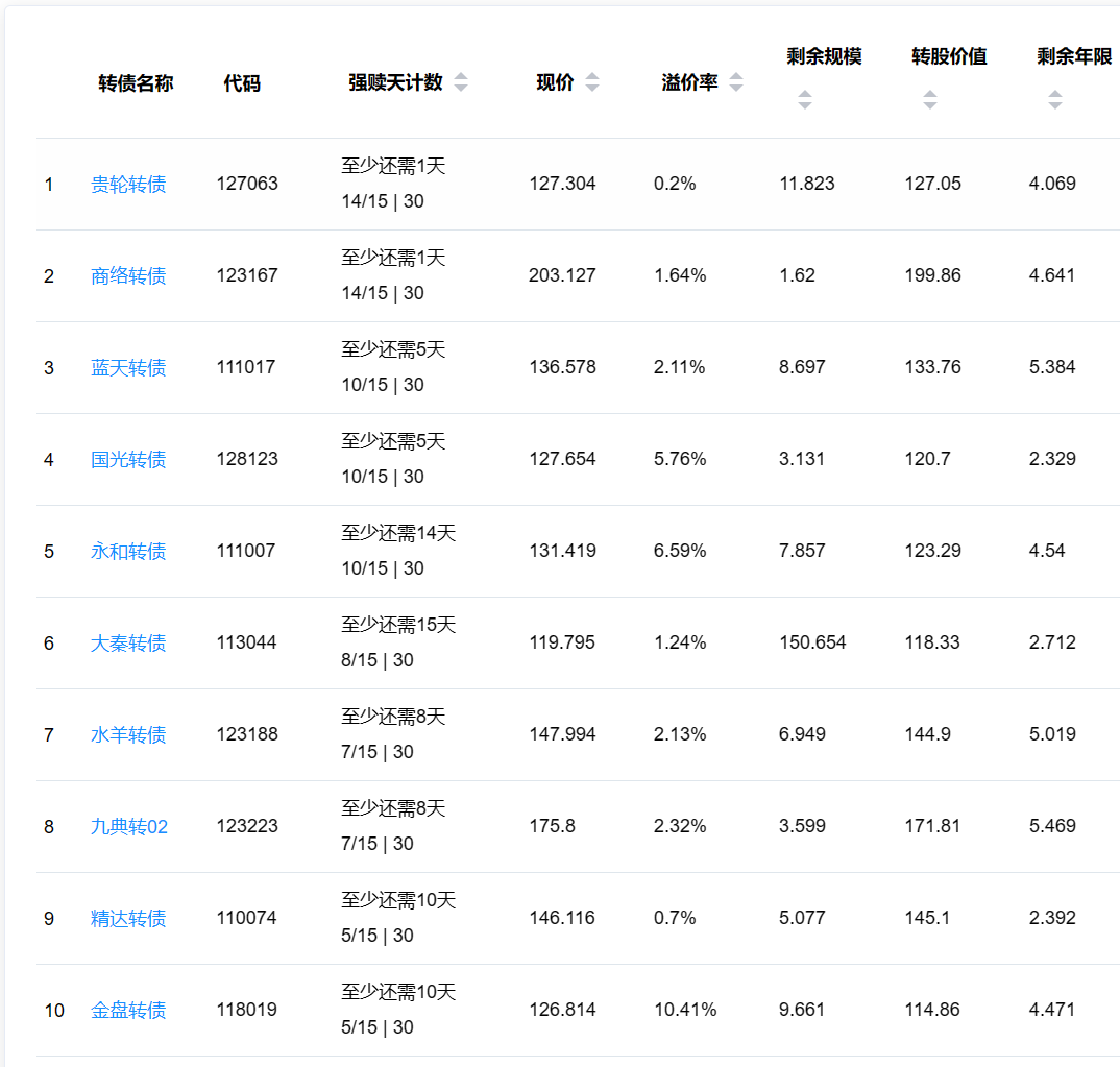 下面这些转债,要注意强赎杀溢价风险,尤其是溢价率在5%以上的。