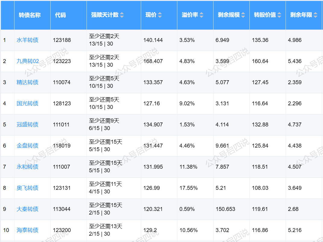 下面这些转债,要注意强赎杀溢价风险,尤其是溢价率在5%以上的。