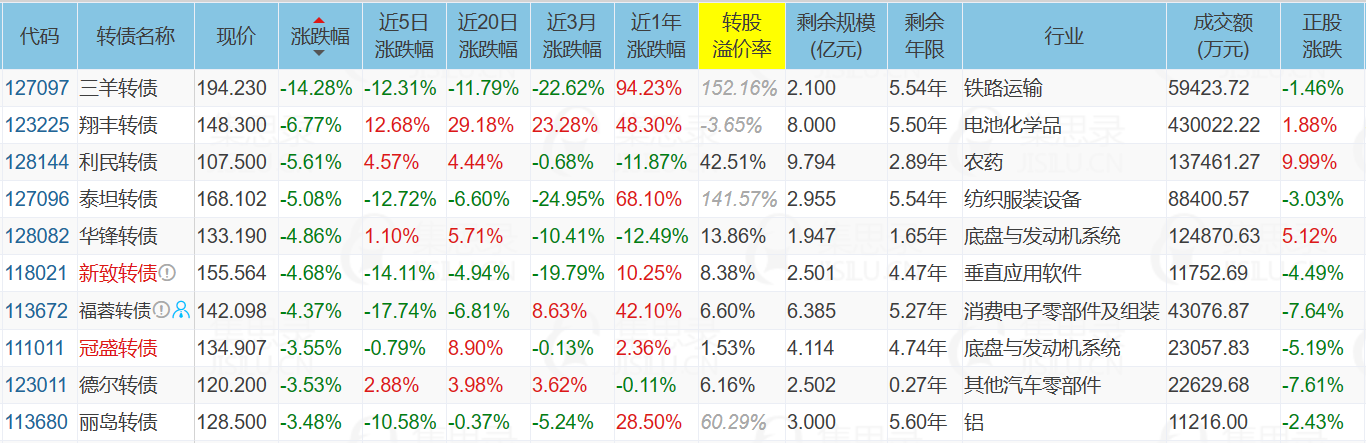 2、跌幅榜前十