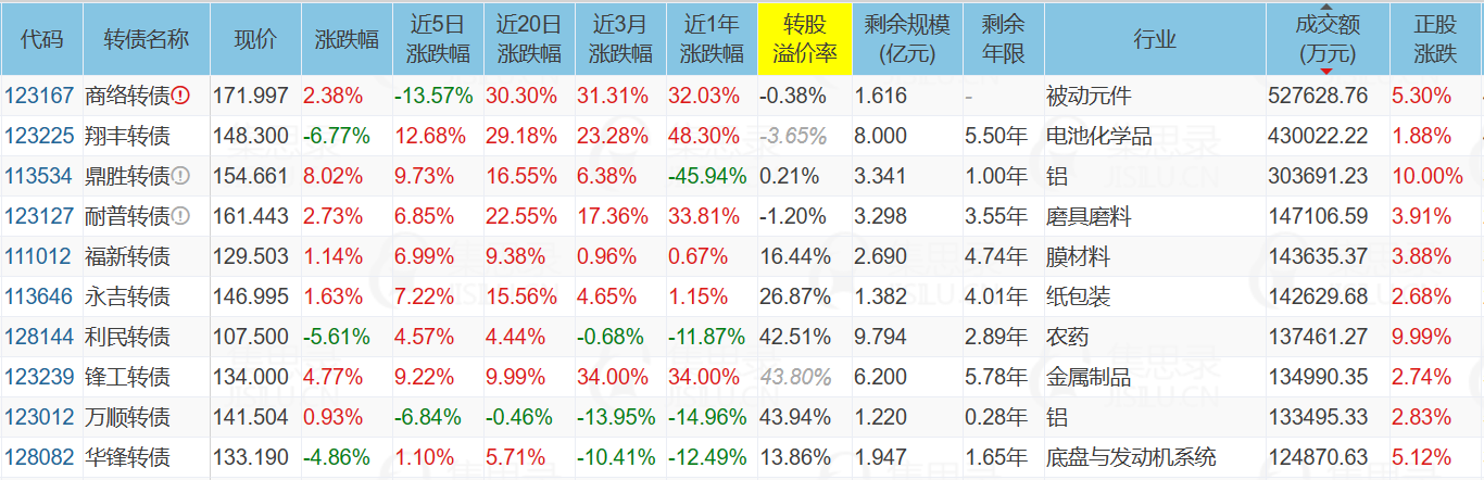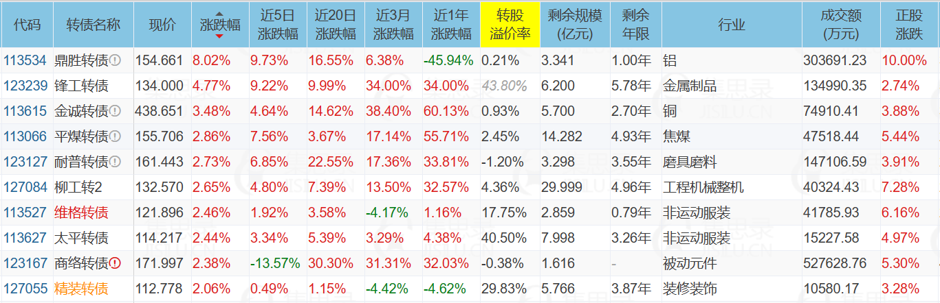 2、涨幅榜第一名的鼎胜转债,正股鼎胜新材是国内铝箔市场规模最大的企业,铝箔产销量,出口量及市场占有率均位居国内第一,电池箔产品市占率第一;公司生产的铝箔可以应用于固态电池。