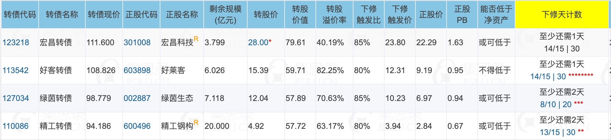 2、明后两天将有4只转债满足下修条件,