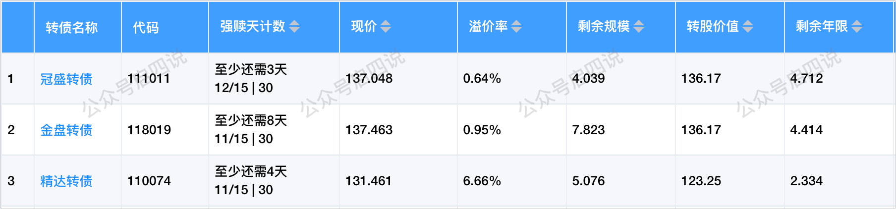 下面3只转债,最快下周可能满足强赎条件,要注意强赎风险。