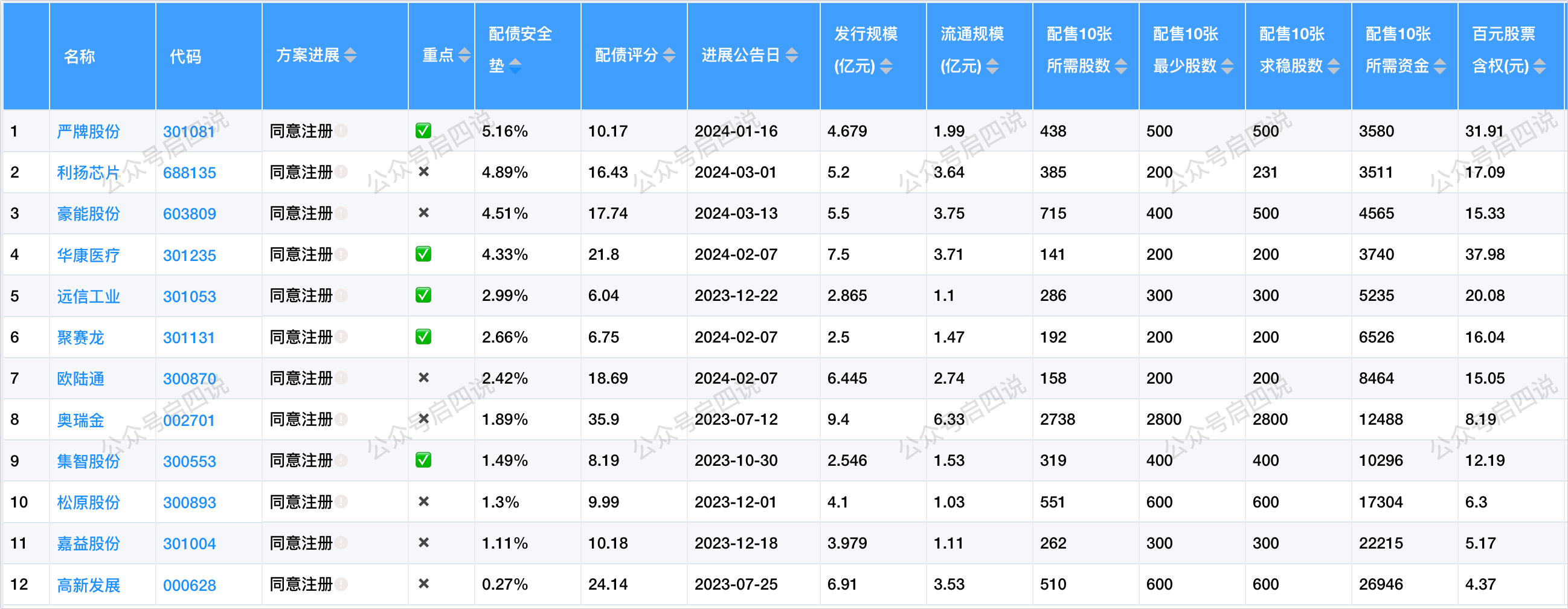 当前同意注册的转债中,不考虑炒妖的情况下,安全垫从高到低排序为: