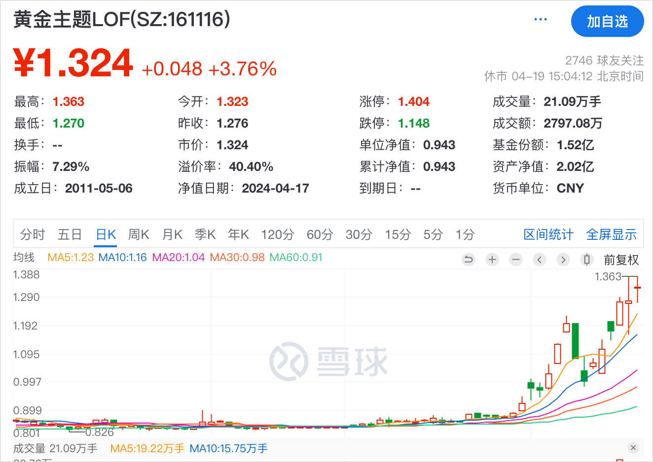黄金主题LOF(161116)从明天开始放开申购,每个账户限额申购100元。
